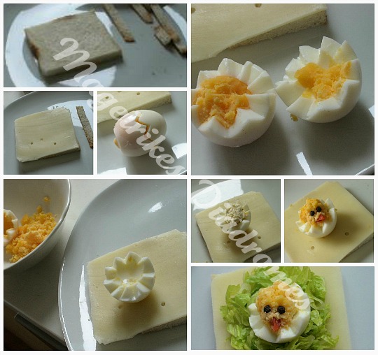 - Τοποθετώ το ασπράδι πάνω στο ψωμί. Στο άδειο ασπράδι, βάλω τη γέμιση που επιθυμώ και πάνω της τρίβω τον κρόκο.