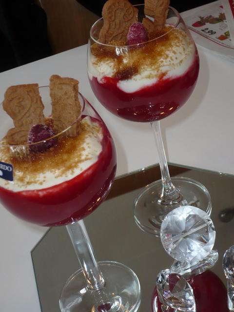 3. Σέ ποτήρια βάζουμε πρώτα την Σος και μετά την κρέμα, πασπαλίζουμε μέ τήν ζάχαρη καφέ καί τό βάζουμε στό ψυγείο καλύτερα μία μέρα πρίνε τό σερβίρουμε
