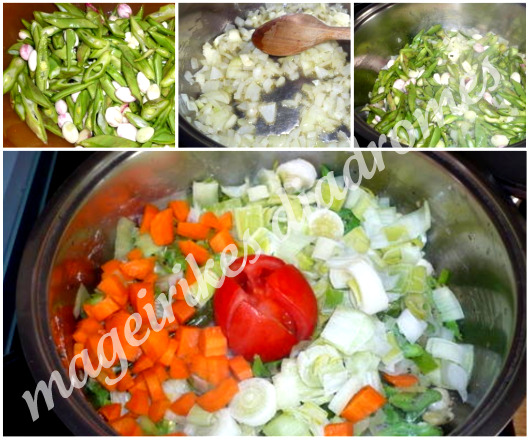 - Καθαρίζουμε και κόβουμε τα φασολάκια (βλέπετε φωτό)