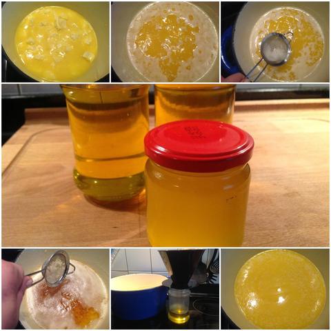 - Το Ghee ειναι ετοιμο καθαρισμενο μόλις παρει ενα κίτρινο χρυσό χρωμα και είναι τόσο διαφανες ώστε να μπορείτε να δείτε τον πατο της κατσαρολας σας.