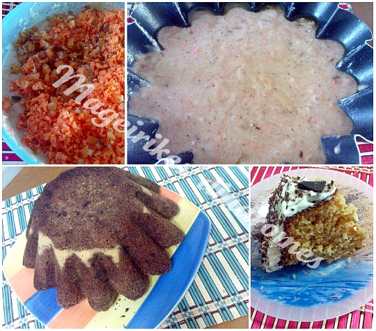 - Ρίχνουμε το μείγμα σε φόρμα ή ταψί ,ψήνουμε 45' περίπου. Αφήνουμε να κρυώσει.