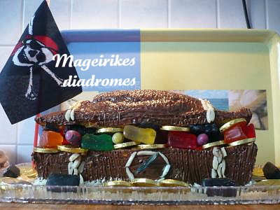 - Εάν θέλουμε να μεταμορφώσουμε το κέικ μας σε κασελάκι με θησαυρούς, κόβουμε λίγο πάνω από τη μέση ένα καπάκι, αλείφουμε με λιωμένη κουβερτούρα και γεμίζουμε με διάφορα ζαχαρωτά.