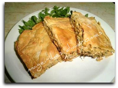 - Λαδώνω μεγάλο ταψί και βάζω τα 3 φύλλα κάτω, όλα λαδωμένα, στην μέση την γέμιση και 2 φύλλα επάνω