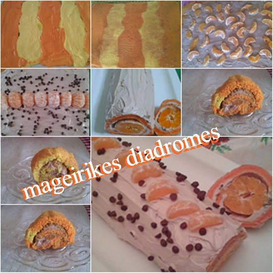 Όπως θα δείτε και στις φωτό το έχω φτιάξει και σε παραλλαγή φτιάχνοντας λευκή κρέμα με 400 γρ. τυρί κρέμα, 1/2 φ. άχνη,1 βανίλια και 3 κ.σ.βιτάμ, που έβαλα την μισή στο παντεσπάνι και με την υπόλοιπη κάλυψα το ρολό. Επίσης έβαλα ολόκληρα τα μανταρίνια και πρόσθεσα σταγόνες σοκολάτας. Τα μανταρίνια αν μπουν ολόκληρα καλό είναι να τα βάλουμε σε ένα τηγάνι με 1 κ.σ. βιτάμ και 2-3 κ.σ. ζάχαρη μέχρι να πιουν τα υγρά τους και να μαλακώσουν. Και με τους δυο τρόπους είναι γευστικότατο!