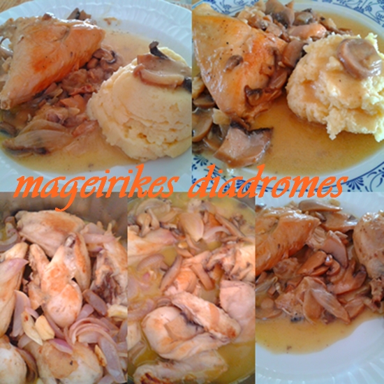 Κοτόπουλο με λευκό κρασί και μανιτάρια