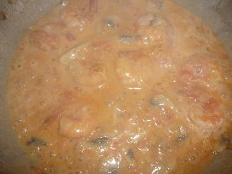 4)  Αφού   αφήσουμε  να  πάρει   μια  βράση  και   αρχίσει  να  μαγειρεύεται  η  ντομάτα  ρίχνουμε  λίγη  κρέμα  γάλακτος   και   το  κουταλάκι   oyster   sause .