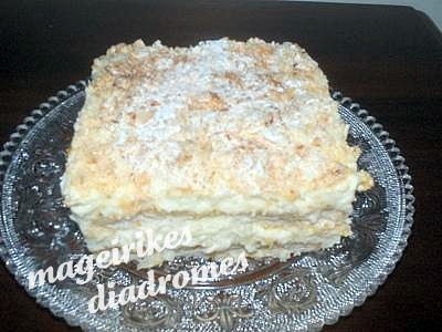 - Επάνω στην κρέμα τρίβουμε μερικά σφολιατίνια,και πασπαλίζουμε με λίγη ζάχαρη άχνη και κανέλα.
