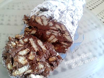 - Ρίχνουμε το μείγμα σε λαδόκολλα ή αλουμινόχαρτο 60Χ70 εκ.,τυλίγουμε σε ρολό κλείνοντας καλά τις άκρες.