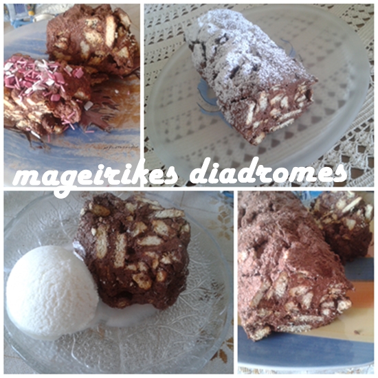 Πασπάλισα με άχνη το ρολό πριν το κόψω σε φέτες, μπορείτε να το καλύψετε και με τρούφα. Ωραίο θα είναι και σε φόρμα, σαν τούρτα! Η συνταγή από τα πτι-μπερ