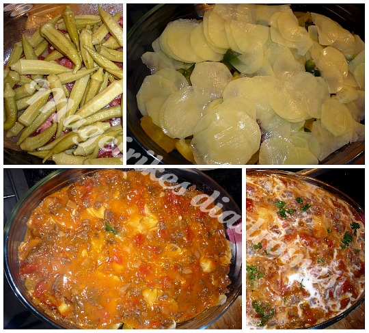 - Λαδώνουμε ένα πυρεξ με λάδι. Στρωνουμε στον πατο τις φετες ντομάτας, προσθέτουμε αλάτι και πιπέρι, βαζουμε μια στρωση μπαμιες,πιπεριες και απο τη σαλτσα κιμα, πασπαλιζουμε με λιγο μαιντανο. Ξανα παλι το ιδιο, βαζουμε μια στρωση μπαμιες,πιπεριες, και απο τη σαλτσα κιμα πασπαλιζουμε με λιγο μαϊντανό.