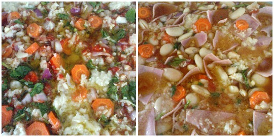 - Βάζουμε τα φασόλια στο νερό από το βράδυ. Το πρωί τα ξεπλένουμε και τα νεροβράζουμε 20'περίπου.