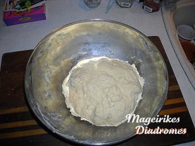 - Ξαναβάζουμε λίγο αλεύρι και λιγο νερό στο μίγμα, ζυμώνουμε πάλι και ξανασκεπάζουμε για άλλες 24 ώρες. Επαναλαμβάνουμε την ίδια διαδικασία για τριτο 24ωρο.