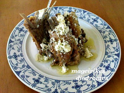 - Σερβίρουμε στα πιάτα και περιχύνουμε με την σάλτσα φέτας και μυρωδικών.