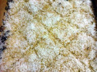 - Το πασπαλίζουμε με καρύδα ή χτυπάμε μια κρέμα γάλακτος σε σαντιγύ και καλύπτουμε το γλυκό μας προσθέτοντας τριμμένα καρύδια!