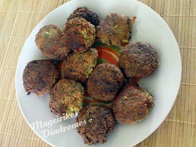 - Παίρνουμε κουταλιές από τον μείγμα, τις πλάθουμε σαν κεφτεδάκια, τις αλευρώνουμε και τις τηγανίζουμε σε καυτό λάδι.