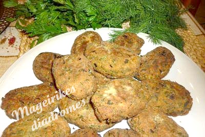 4. Πλάθουμε τους κεφτέδες,τους αλευρώνουμε και τους τηγανίζουμε σε καυτό λάδι . Τους βάζουμε σε απορροφητικό χαρτί.