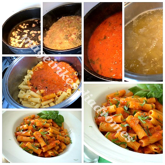 - Βράζω τα ριγκατόνι , τα στραγγίζω και τα γυρίζω στην κατσαρόλα. Ρίχνω μέσα τη καυτή σάλτσα και ανακατεύω καλά.