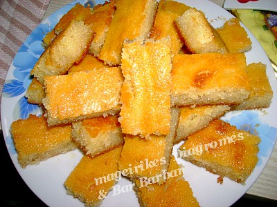 - 2 σταγονες ηλιελαιο (αυτο το κανουμε σ ολα τα σιροπιαστα γλυκα για να μην ζαχαρωνουν, μικρο τουρκικο μυστικο).