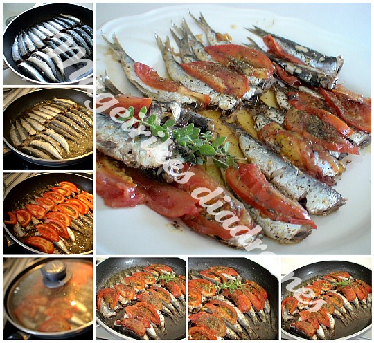 - Πασπαλίζουμε με ρίγανη και τοποθετούμε τις φέτες ντομάτας πάνω στις σαρδέλες. Ρίχνουμε λίγη ρίγανη ακόμα.
