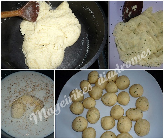 - Βαζουμε στο γάλα, το αλάτι, το μοσχοκάρυδο και το βούτυρο και το βάζουμε να πάρει μια βράση. Σταδιακά προσθέτουμε το σιμιγδάλι σιγά-σιγά και το ανακατεύετε συνεχώς μέχρι το μείγμα να χωρίζει από τον πάτο της κατσαρόλας σε μια παχιά ζύμη. Αφήστε τη ζύμη κρυώσει.