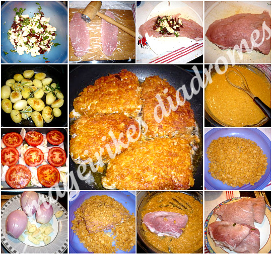 Σνίτσελ γεμιστά πικάτα με πατάτες δεντρολίβανου