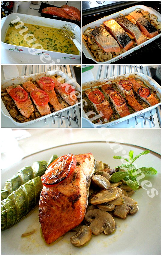 Σολομός με μανιτάρια στο φούρνο