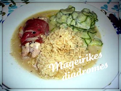- Σερβίρετε με την σάλτσα του και 5 κ σ ρύζι στραγγιστό και μια σαλάτα Η με 50 γρ ψωμί