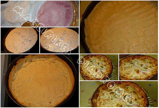 Ανοίγουμε την ζύμη σε ένα φύλλο και την βάζουμε σε βουτυρωμένη 26αρα φόρμα με στεφάνι