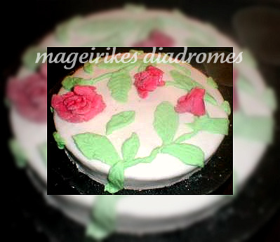 9. Όταν κρυώσει το πασπαλίζουμε με κακάο  ή σοκολάτα γλάσο,  ή αμυγδαλόπαστα, ή ζαχαρόπαστα