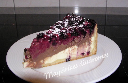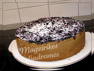 - Ή άν δέν θέλουμε τά φρούτα, όταν ψηθεί τό γλυκό μας , χτυπάμε τά ασπράδια μέ 100 γρ ζάχαρη σέ μαρέγγα και τήν απλώνουμε επάνω στό γλυκό. Ψήνουμε στούς 175°βαθμούς ή στόν αέρα στους 150° βαθμούς