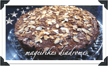 Αλείφουμε με το 1|3 της κρέμας και γαρνίρουμε την τούρτα με τα αμύγδαλα