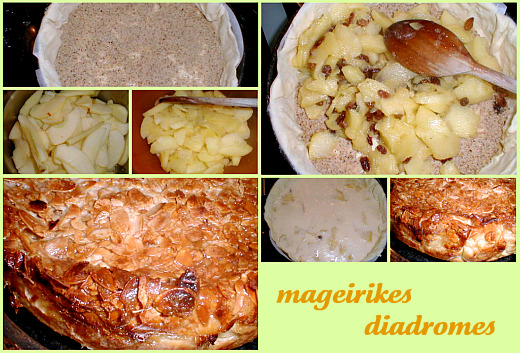 - Προσθέτουμε στα μήλα τις σταφίδες με λίγο κονιάκ μουσκεμένες.