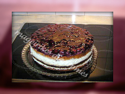 Τέλος βάζουμε την τελευταία βάση, την βρέχουμε λίγο με λικέρ και στρώνουμε τα κεράσια
