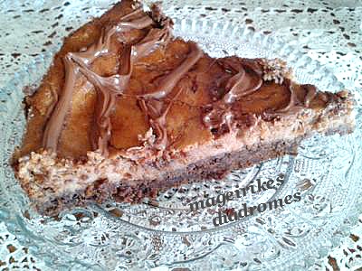 - Ρίχνουμε την κρέμα πάνω από τη βάση μπισκότου,απάνω βάζουμε μικρές κουταλιές μερέντας και με οδοντογλυφίδα σχηματίζουμε "νερά", συνεχίζουμε το ψήσιμο για 30 λεπτά.