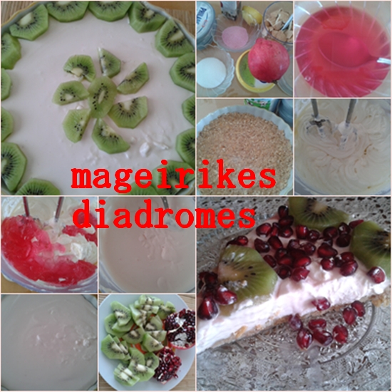Η συνταγή είναι από το νηστικό αρκούδι με κάποιες δικές μου παραλλαγές. Εβαλα ζελέ στην κρέμα και όχι ζελατίνη. Διακόσμησα το γλυκό και με ακτινίδιο σε φέτες που του πάει πάρα πολύ. Το σιρόπι θέλει βράσιμο 45 λεπτά για να δέσει ελαφρά.