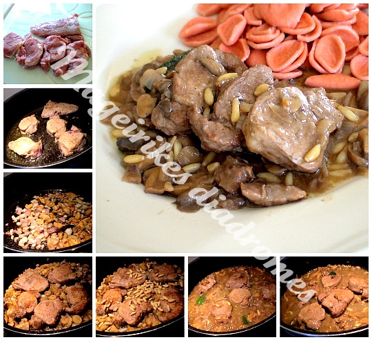- Αλατίζουμε λίγο το κρέα ς μας, το Αλευρώνουμε ελαφρά και το σοτάρουμε 2-3 λεπτά από την κάθε πλευρά.