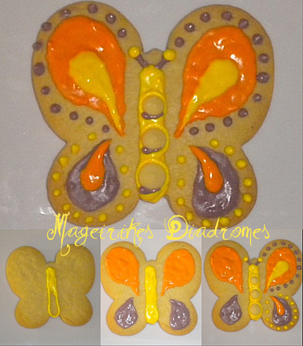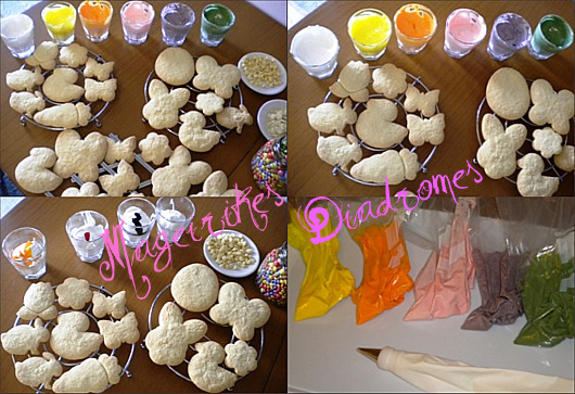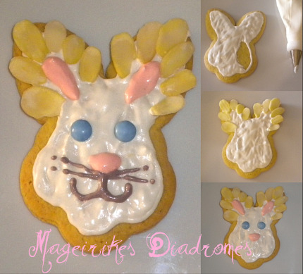 - Διακοσμούμε τα μπισκότα με κορνέ σχεδιάζοντας πρώτα το περίγραμμα του σχεδίου και μετά γεμίζοντάς το.