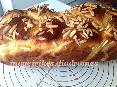 - Πλάθουμε τη ζύμη μας σε σχήμα τσουρεκιού. Το βαζουμε σε μια μακροστενη φορμα και αφηνουμε να διπλασιάστεί σε όγκο.