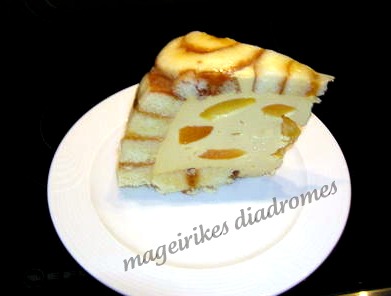 - Ρίχνουμε τό μίγμα τυρί μέσα καί βάζουμε επάνω πάλι από τίς φέτες παντεσπάνι τό βάζουμε γιά 4 ώρες.στό ψυγείο