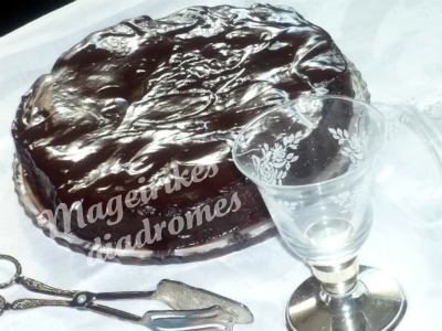 - Ρίχνουμε σιγά-σιγά το μισό γλασο σοκολατας,το αφήνουμε να κρυώσει και στη συνέχεια ρίχνουμε σιγά σιγά λίγο ακόμα από το γλάσο κουνώντας καλά να πάει παντού και στα πλάγια. Όταν στεγνώσει και η 2η στρώση, βγαζουμε το δαχτυλίδι από τη φόρμα και ρίχνουμε επάνω του το υπόλοιπο γλάσο. Το γλασο ειναι αρκετα αραιο αλλα μετα οταν κρυώσει είναι στερεο και έχει πολυ λεπτή γευση!