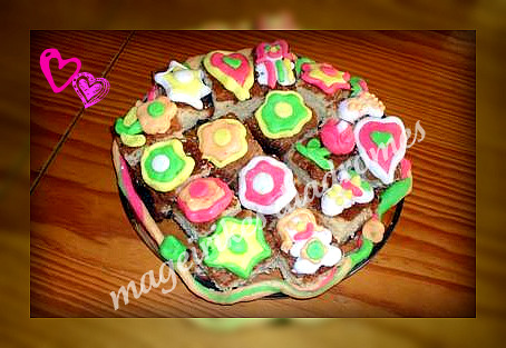 Κόβουμε σε μακρόστενα ή τετράγωνα κομμάτια και τα διακοσμούμε με ζαχαρόπαστα ή αμυγδαλόπαστα.