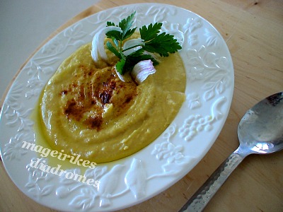 Λίγο πριν σβήσω το μάτι της κουζίνας, πολτοποιώ την φάβα και γίνεται σαν πουρές.