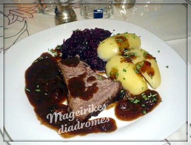 - Σερβίρουμε μέ Πατάτες βραστές καί σάλτσα,ή Μακαρόνια spaetzle