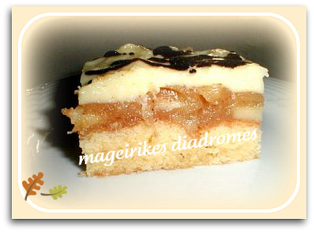 - Βάζουμε ένα δαχτυλίδι γύρω από το παντεσπάνι και ρίχνουμε το μείγμα με τα μήλα.
