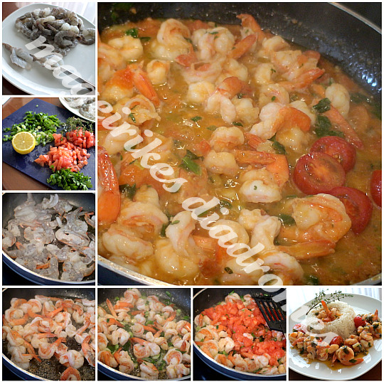 Καθαρίζουμε τις γαρίδες από τα κεφάλια και το κέλυφος, αφήνοντας όμως την ουρά τους. Βγάζουμε το εντεράκι, αν έχουν με μια οδοντογλυφίδα, και τις χωρίζω κατά μήκος στα 2 χωρίς να χωρίσω την ουρά.