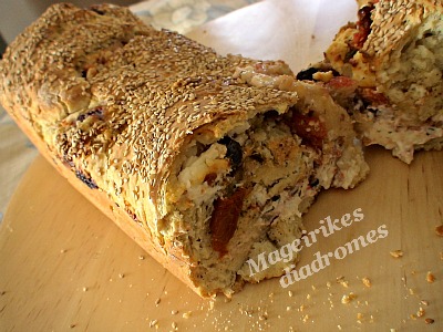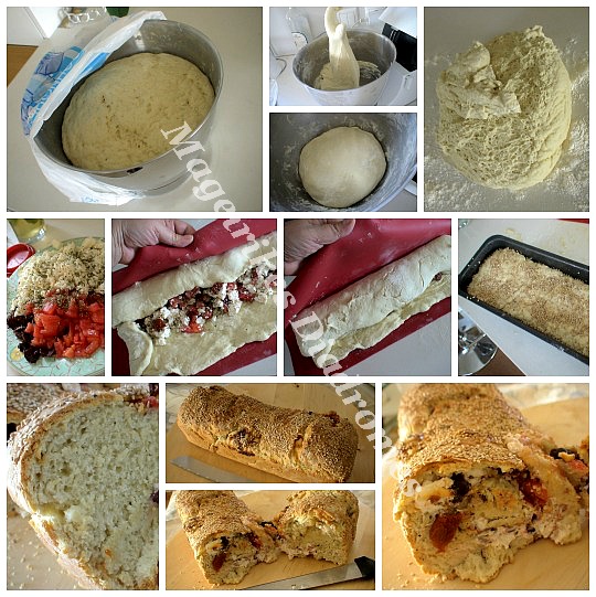 - Σε περίπτωση που το ψωμί δεν έχει κλείσει καλά και βγάζει υγρά (από τη φέτα προφανώς) τότε βγάλτε τη φόρμα από το φούρνο , αδειάστε το υγρό και συνεχίστε το ψήσιμο κανονικά, μέχρι που όταν χτυπάτε το ψωμί με το χέρι να ακούγεται ένας ξερός ήχος.