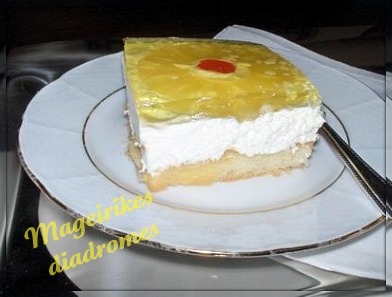 - Στρώνουμε και τις ροδέλες του ανανά. .