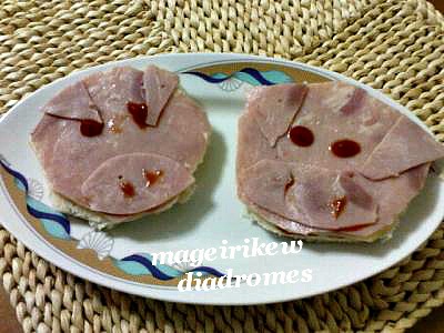 - Με την κέτσαπ σχεδιάζουμε τα ματάκια τους,"γεμίζουμε" και τα ρουθούνια τους.