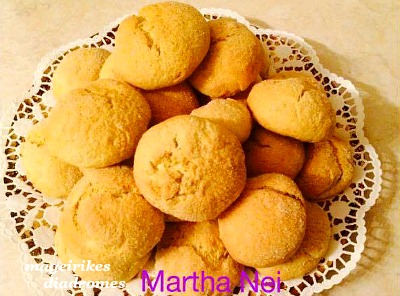 - Μετα παίρνουμε απο τη ζυμη, κανουμε μπαλάκι ανάμεσα στα χερια, μετα βουτάμε στη ζαχαρη