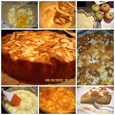 - Βαλτε το μιγμα στην φορμα και καθαριζετε τα μηλα, τα κόβετε σε 8 κομματια,και τα βαζετε γυρο γυρο ,το ενα διπλα στο αλλο,σε ολη την φορμα.